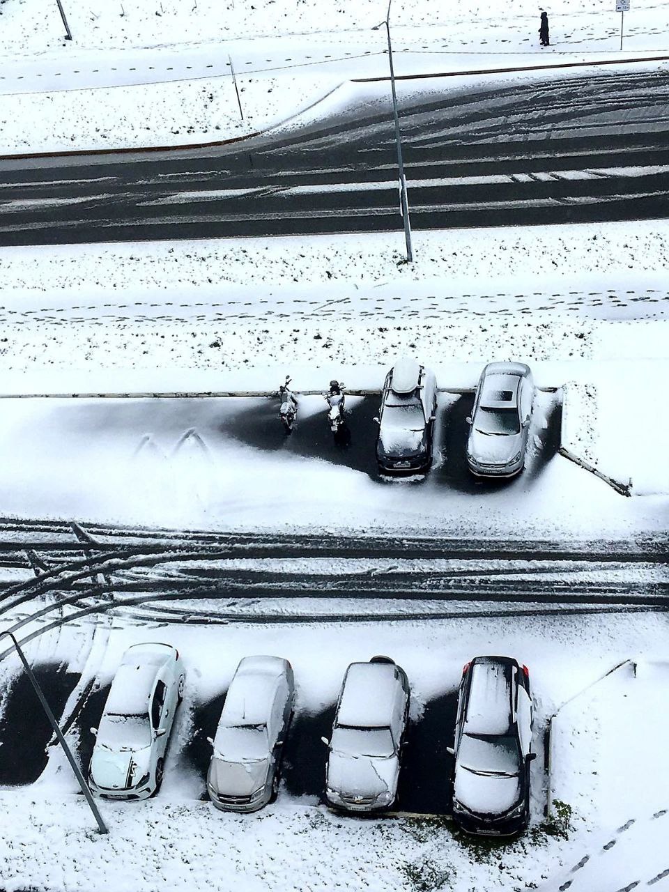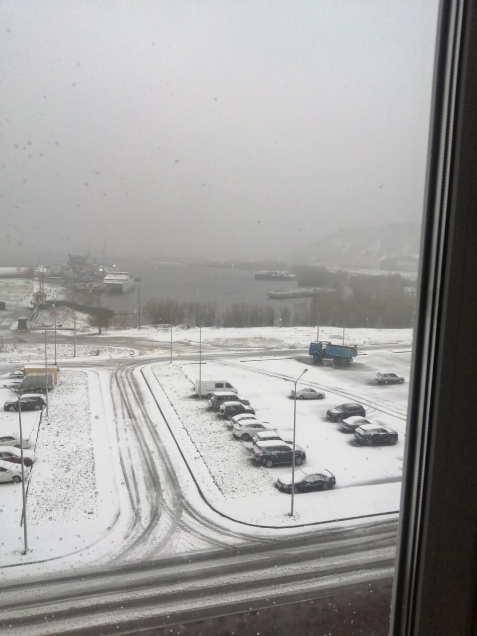 За ночь югорскую столицу накрыло снегом, а температура за окном еле-еле превышает 0 °C.