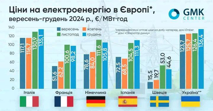 На инфографике — цены на электроэнергию для промышленности в Украине и Европе.