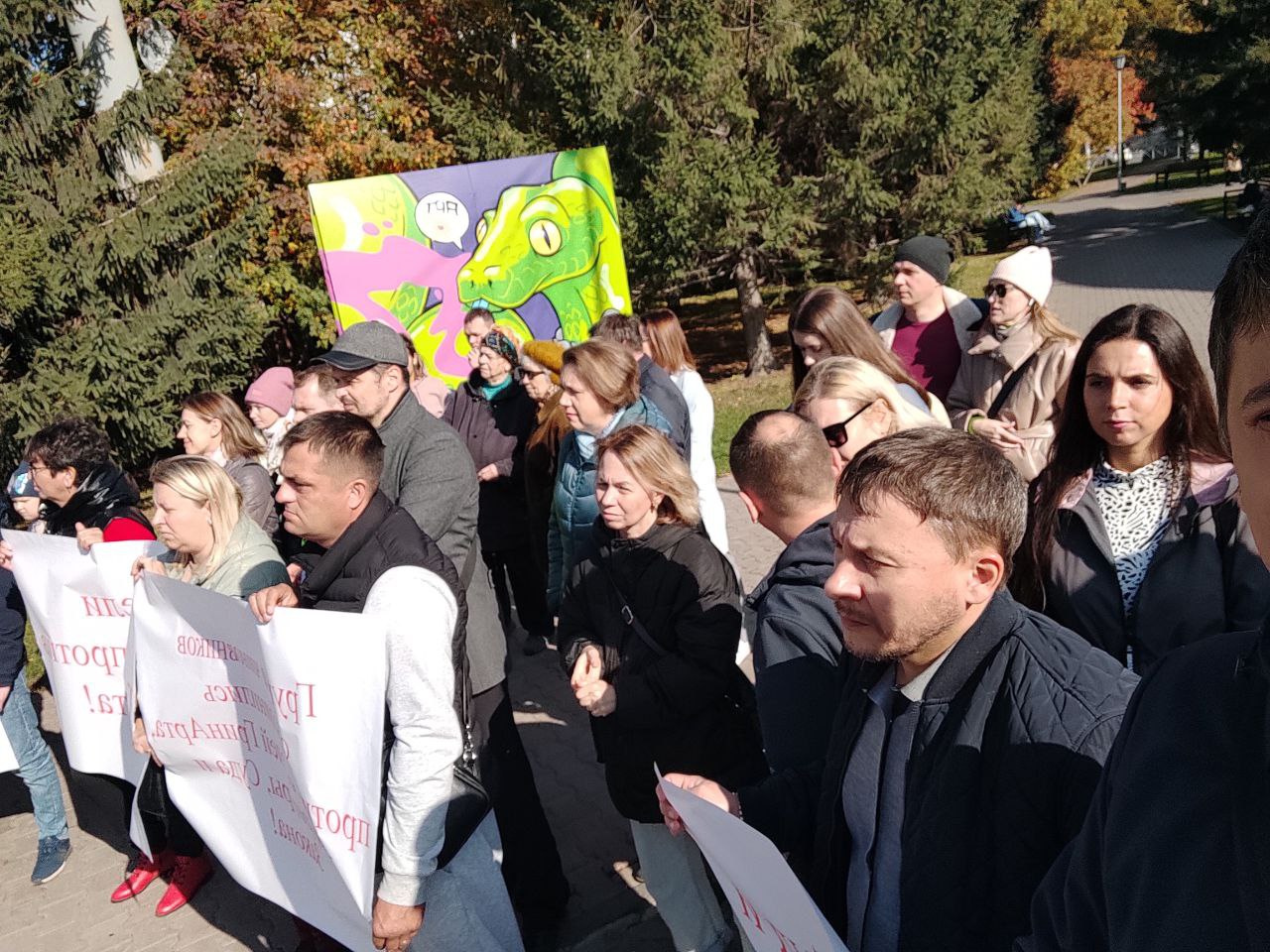 В Новосибирске сегодня, 5 октября, прошел митинг в сквере у театра «Глобус». С плакатами вышла толпа жителей ЖК «Грин Арт». Митинг начался в 13:00.