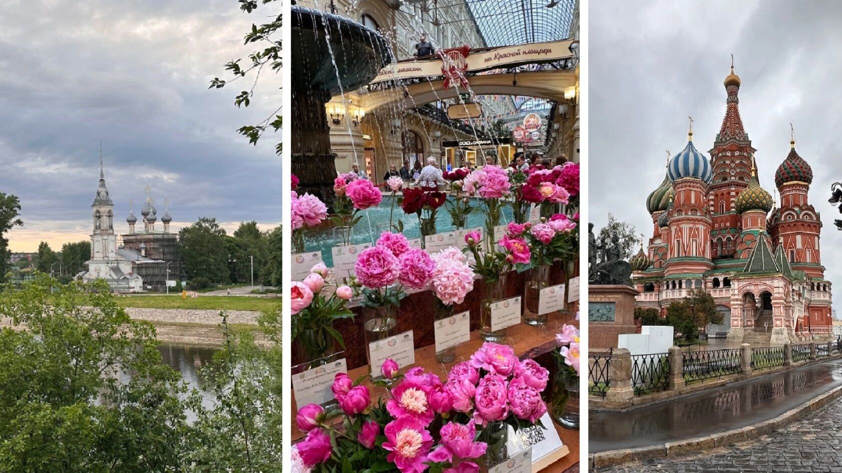 «Планов у нас конкретных не было, вечером самолет, поэтому действовали по настроению. Пошли в ГУМ на экскурсию. Вход в ГУМ через рамки-металлоискатели. Мы как раз попали на выставку пионов. Очень красиво, а главное — вкусно пахнет.