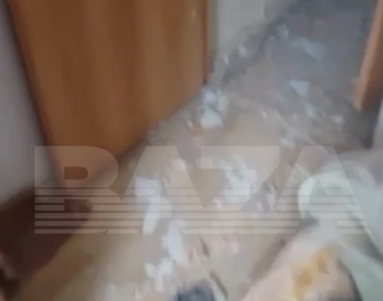 BAZA опубликовала фото и видео из квартиры в Туле на улице Хворостухина, в окно которой врезался беспилотник.