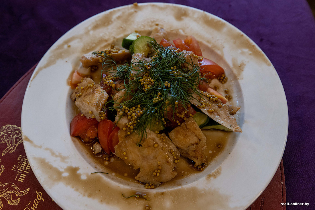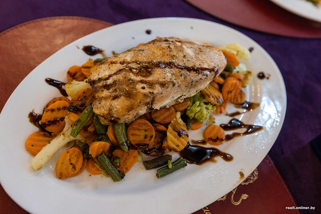 В меню — микс из белорусской и европейской кухонь с примесью наггетсов и картошки фри. Цены такие: