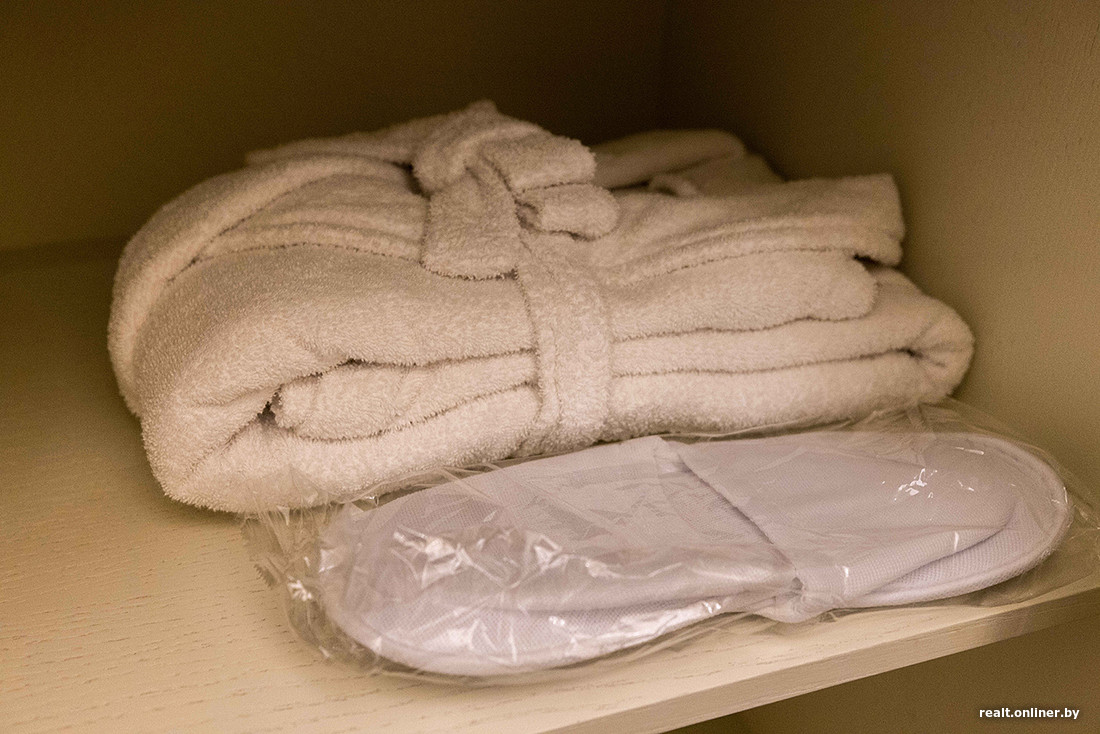 Но довольно лирики, давайте поговорим о люксе. Что же в нем скрывается? Открываешь дверь и попадаешь в компактную прихожую. Здесь стоят две мягкие табуретки и шкаф с ароматизатором внутри, одноразовыми тапочками и полотенцами, сейфом. А еще висит зеркало в полный рост.