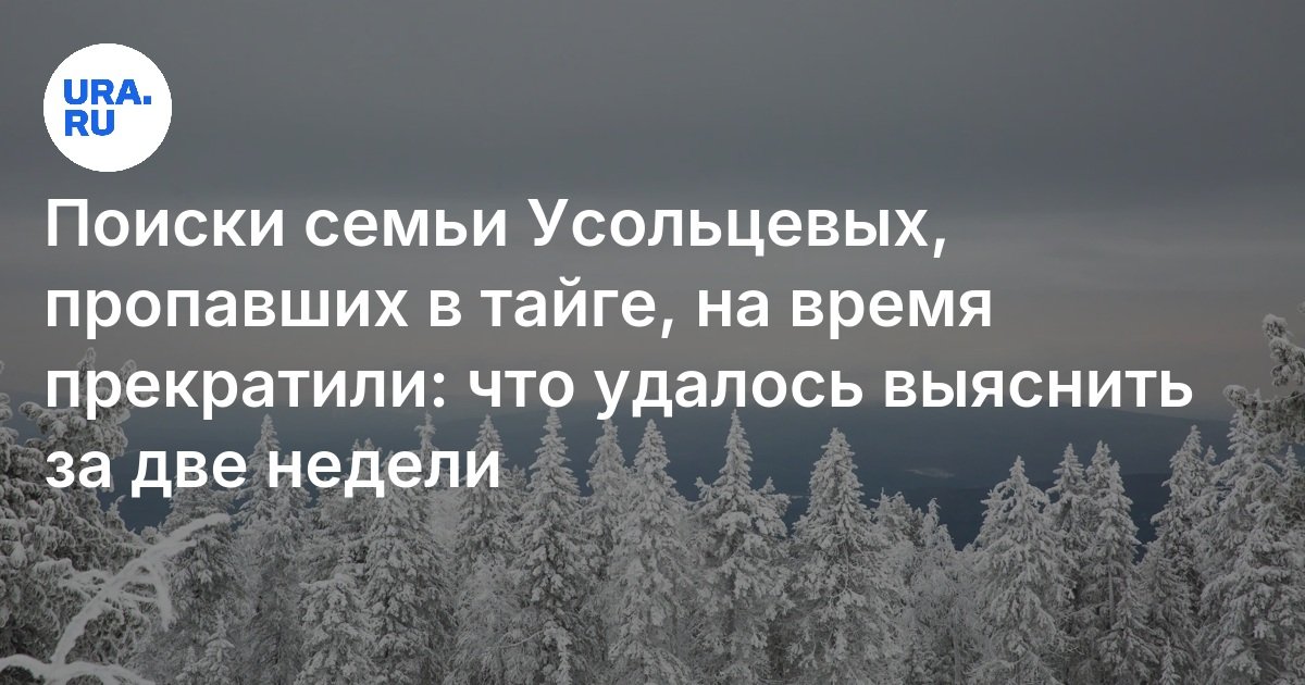 В Красноярском крае временно приостановлены поисковые мероприятия по обнаружению пропавшей семьи Усольцевых. Об этом сообщил депутат Законодательного Собрания региона Алексей Кулеш. По его словам, принято решение прекратить активные поиски из-за наступления неблагоприятных погодных условий и невозможности продолжать работы в зимний период. Что известно за две недели поисков пропавшей семьи — в материале URA.RU.