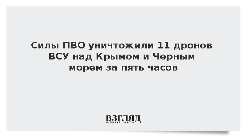 «В период с 18.00 мск до 23.00 мск дежурными средствами ПВО уничтожены 11 украинских беспилотных летательных аппаратов самолетного типа над территориями Республики Крым и акваторией Черного моря», – сказано в посте.