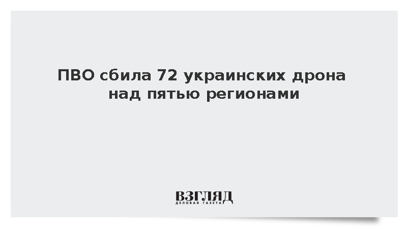 Дежурные силы российской ПВО перехватили и уничтожили 72 украинских беспилотных летательных аппарата самолетного типа, передает РИА «Новости».