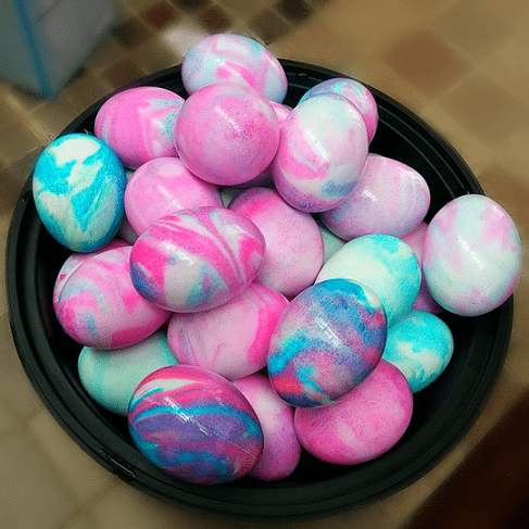 Сегодня мы хотим вам предложить быстрый и простой способ покрасить пасхальные яйца в этом году! Используйте крем для бритья и пищевой краситель! Яйца, покрашенные таким интересным способом выглядят как галактические, притягивают к себе внимания и хочется узнать как же ни были сделаны.