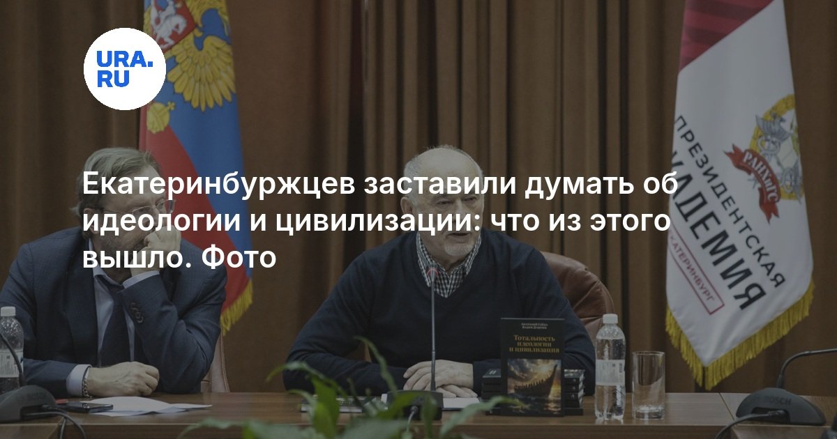 Экс-советник свердловских губернаторов Анатолий Гайда и замруководителя аппарата главы региона Вадим Дубичев, предлагавшие переписать Конституцию РФ, презентовали новую книгу об идеологии и цивилизации, а после получили благодарности от публики — за то, что заставили думать. Думал на презентации и корреспондент URA.RU.