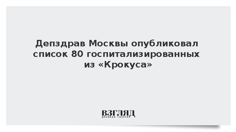 После теракта в подмосковном концертном зале «Крокус Сити Холл» в московские больницы были госпитализированы 80 человек, следует из списка пострадавших.