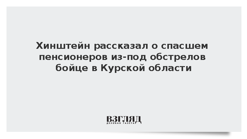 Хинштейн написал в своем Telegram-канале о подвиге бойца с позывным Конь, который спас пенсионеров из деревни Суджанского района. По его словам, в августе, когда начались боевые действия и массированные обстрелы Вооруженных сил Украины, супруги-пенсионеры не успели эвакуироваться и прятались в подвале. Им на помощь пришли российские военные, среди которых особенно запомнился боец из Бурятии. Рискуя жизнью, Конь и его сослуживцы вывезли пенсионеров в безопасное место.