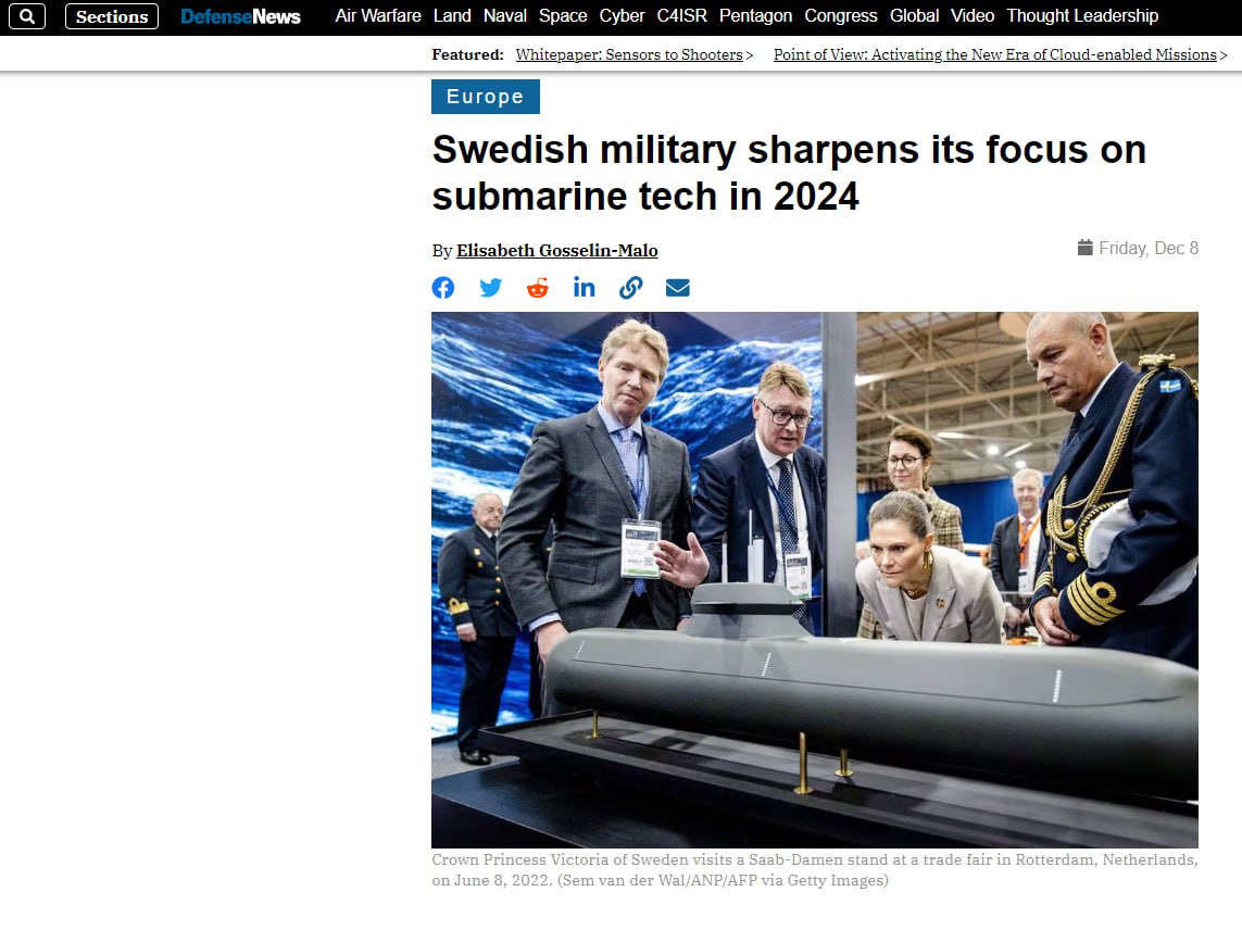 Швеция планирует в 2024 году уделить приоритетное внимание исследованиям подводных технологий, таких как противоминная защита и системы, связанные с подводными лодками, при этом ожидаются исследования возможностей ВМС в этой области.