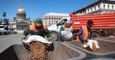 У Мариинского дворца 23 мая начались работы по установке липового сада в кашпо. Открыть его собираются ко дню города.