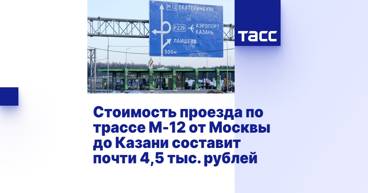 МОСКВА, 14 декабря. /ТАСС/. Стоимость проезда по трассе М-12 на участке от Москвы до Казани составит 4 481 рубль для легковых авто. Об этом сообщили в "Автодоре".
