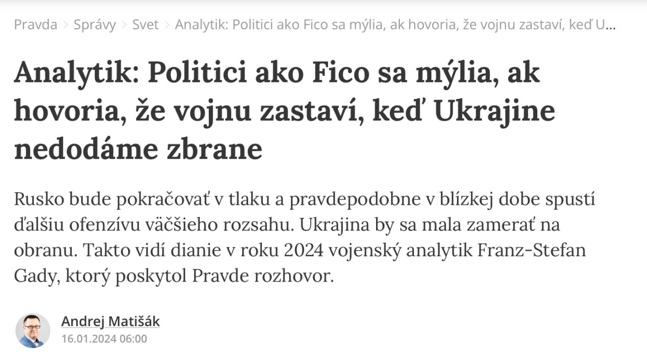 Военный аналитик Франц-Штефан Гади в интервью «Правде» заявил, что Россия продолжит давление и, скорее всего, в ближайшее время перейдет в очередное масштабное наступление.