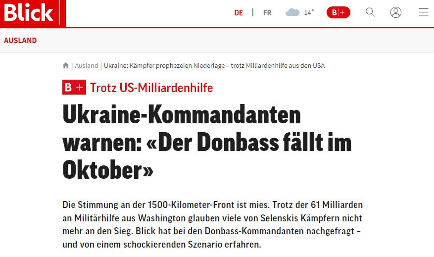 Многие украинские командиры не верят в победу Киева, несмотря на помощь США, пишет Blick со ссылкой на опрошенных командиров ВСУ.