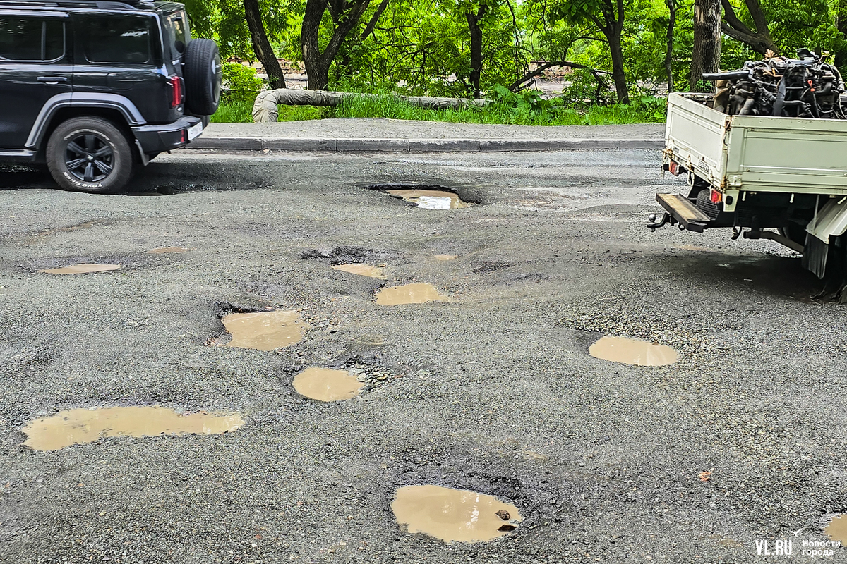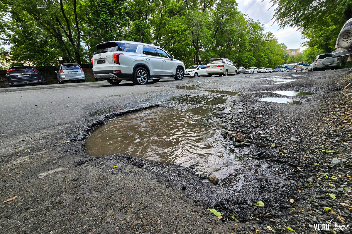 Жители Владивостока ежедневно жалуются на состояние дороги в районе Днепровской, 45. Ещё с декабря здесь начало «давить» воду из люка на косогоре. Вода холодная и чистая, но Приморский водоканал на своих сетях протечек не нашёл. С тех пор их не нашёл никто – вода размыла асфальт окончательно, дожди «добили» остатки. Но администрация Владивостока сообщает, что течь всё ещё ищут, сегодня взяли новые пробы воды.