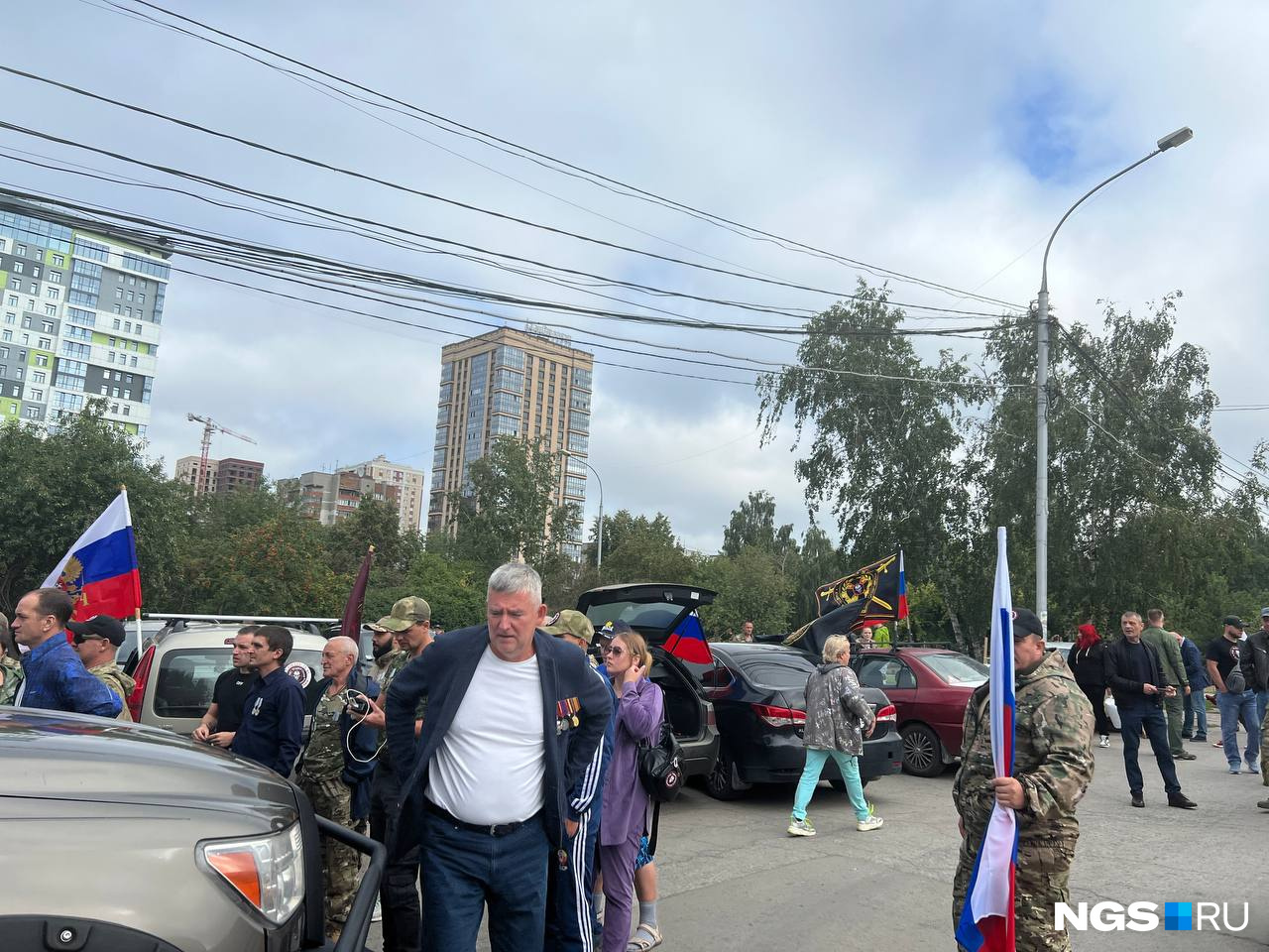 Как стало известно журналисту НГС, представители ЧВК «Вагнер» поедут на Гусинобродское кладбище открывать официально памятник бойцам. Перед этим они собрались на площадке у цирка со своими флагами и флагами РФ.