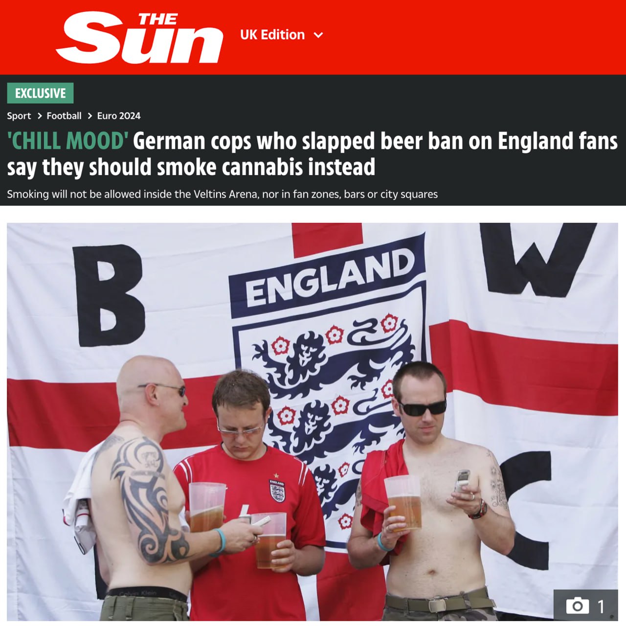 Немецкая полиция так боится беспорядков во время матча Сербия — Англия на Евро-2024, что решила запретить крепкое пиво и предложила фанатам накуриться.