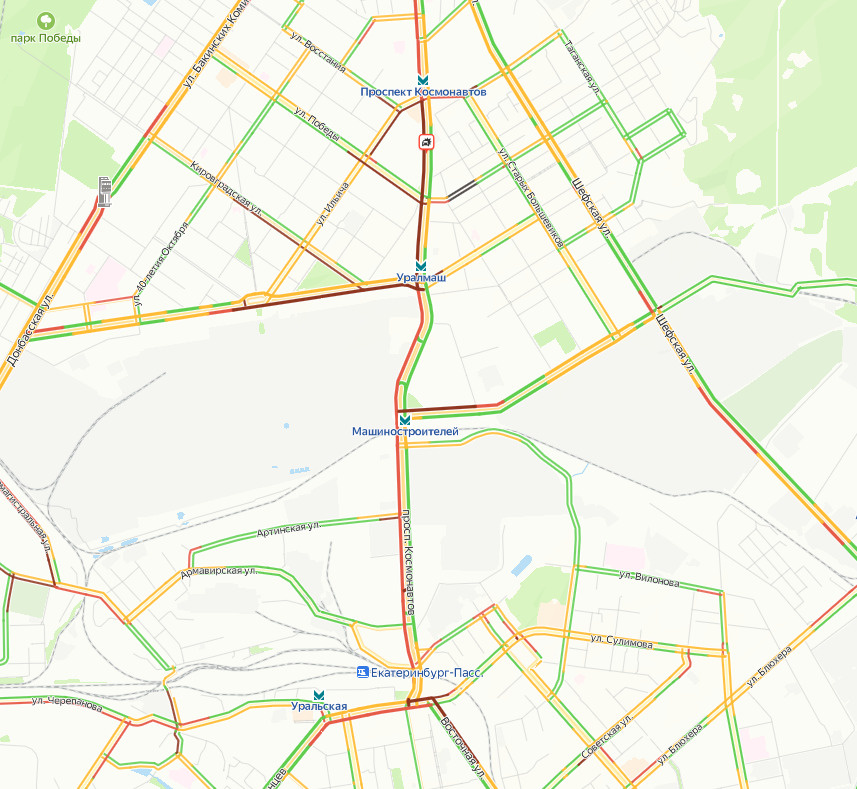 — Сегодня всё жутко стоит: Восточная, Челюскинцев, Космонавтов. Ранее такого не было, — написал читатель E1.RU Григорий.