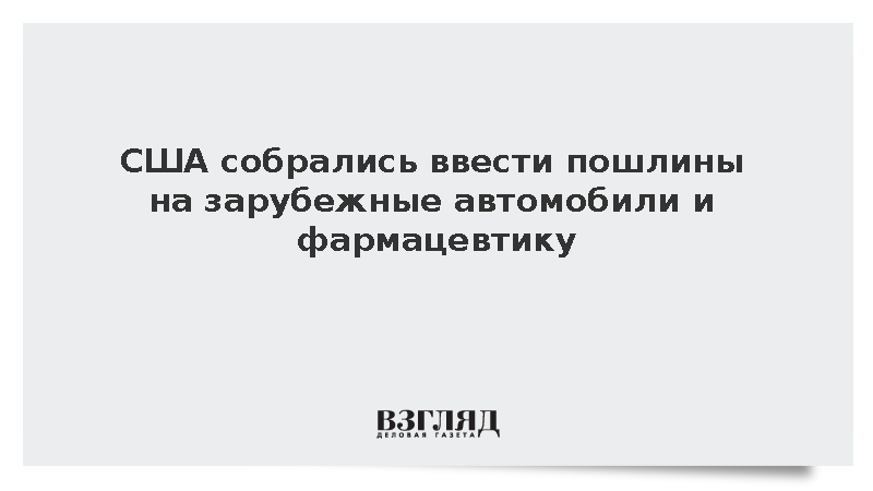 США планируют ввести пошлины в размере около 25% в отношении зарубежных автомобилей и фармацевтики, сообщил Белый дом.