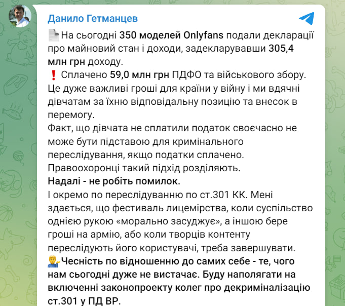 πΠ£ΠΊΡΠ°ΠΈΠ½ΡΠΊΠΈΠ΅ ΠΌΠΎΠ΄Π΅Π»ΠΈ OnlyFans ΡΠΏΠ»Π°ΡΠΈΠ»ΠΈ 59 ΠΌΠ»Π½ Π³ΡΠΈΠ²Π΅Π½ Π½Π°Π»ΠΎΠ³ΠΎΠ², β Π³Π»Π°Π²Π° ΡΠΈΠ½Π°Π½ΡΠΎΠ²ΠΎΠ³ΠΎ ΠΊΠΎΠΌΠΈΡΠ΅ΡΠ° ΠΠ ΠΠ΅ΡΠΌΠ°Π½ΡΠ΅Π²