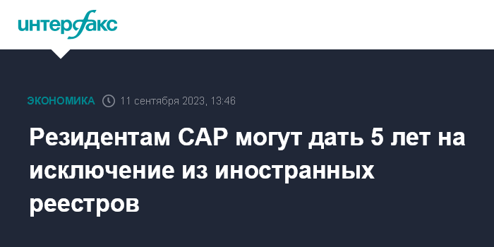 Москва. 11 сентября. INTERFAX.RU - Минэкономразвития обдумывает увеличение с двух до пяти лет срока, за который перерегистрированная в российские специальные административные районы структура должна быть исключена из реестра юрлиц в стране своей бывшей "прописки", сообщил на ВЭФ первый замглавы ведомства Илья Торосов.