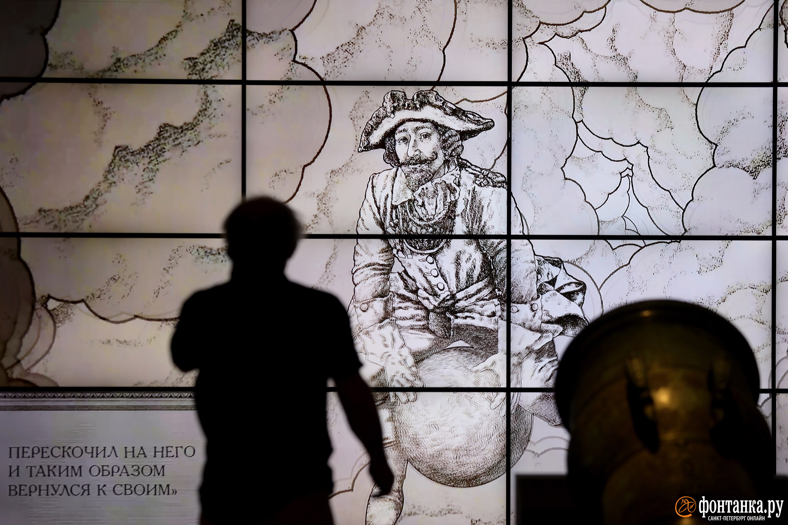 До 15 сентября в Манеже Малого Эрмитажа идет выставка «Приключения барона Мюнхгаузена в России». Куратор — старший научный сотрудник Отдела истории русской культуры Наталья Бахарева — выстроила цепочку витрин как свиток с богато иллюстрированным повествованием. Здесь можно и самому из пушки пальнуть, и прочесть, как три века назад в городах ловили чудищ, и узнать, к макушке какого здания в Петербурге оказался привязан конь, после того, как в городе сошел снег.