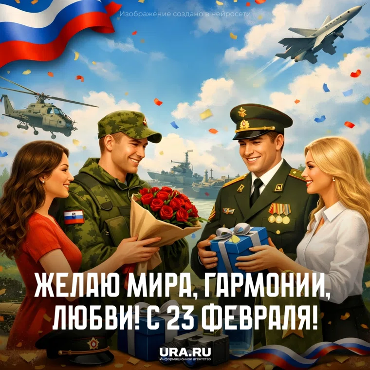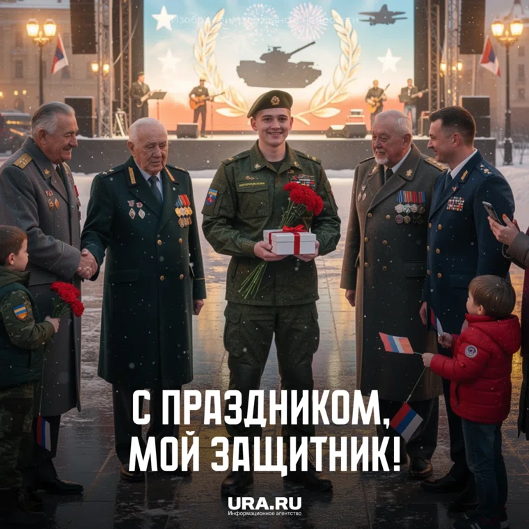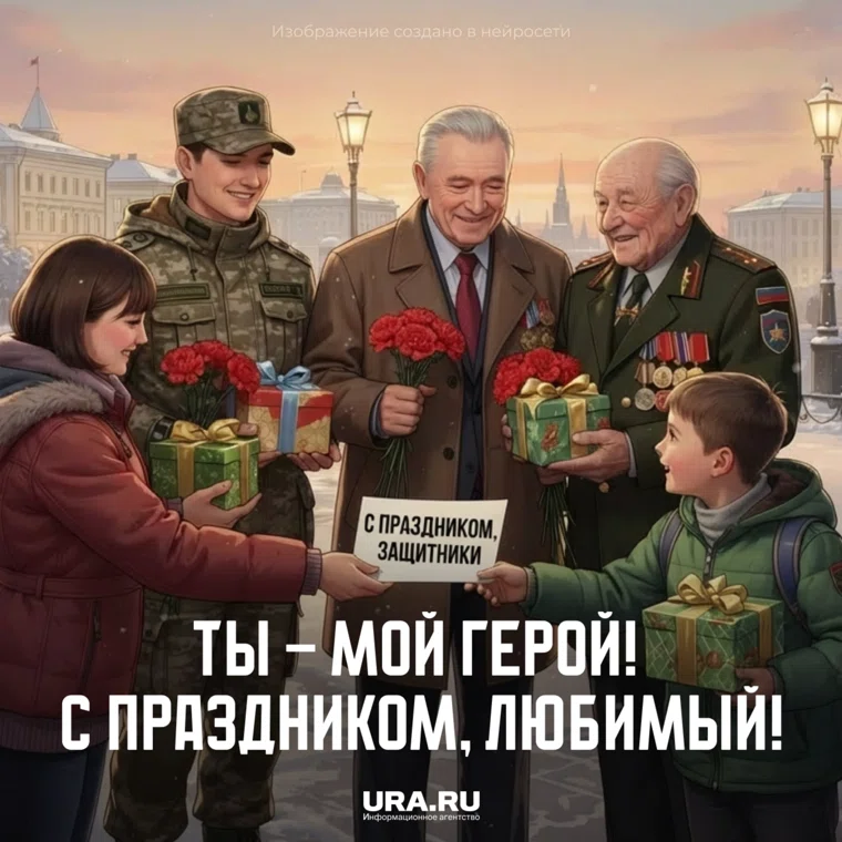 23 февраля 2026 года в России отметят один из самых торжественных и мужественных праздников — День защитника Отечества. Ранее в этот день поздравляли только мужчин, служивших в армии. Сегодня это праздник мужчин разных возрастов и профессий. URA.RU подготовило подборку красивых и душевных открыток, которые вы сможете отправить мужу, брату, сыну, отцу, дедушке или коллеге.