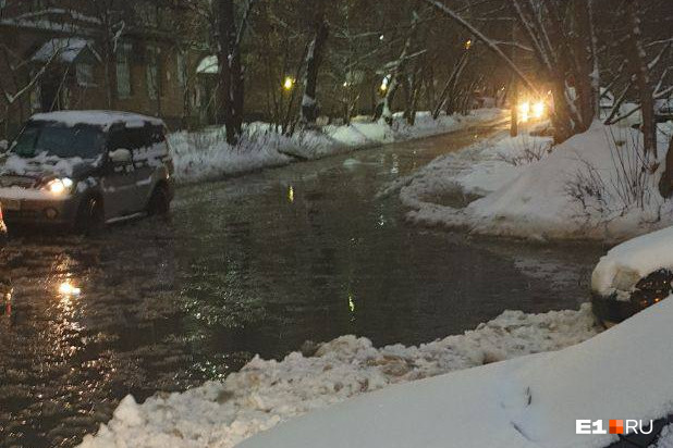 Вода холодная, а причина течи неизвестна. Мы обратились за комментарием в Водоканал Екатеринбурга.