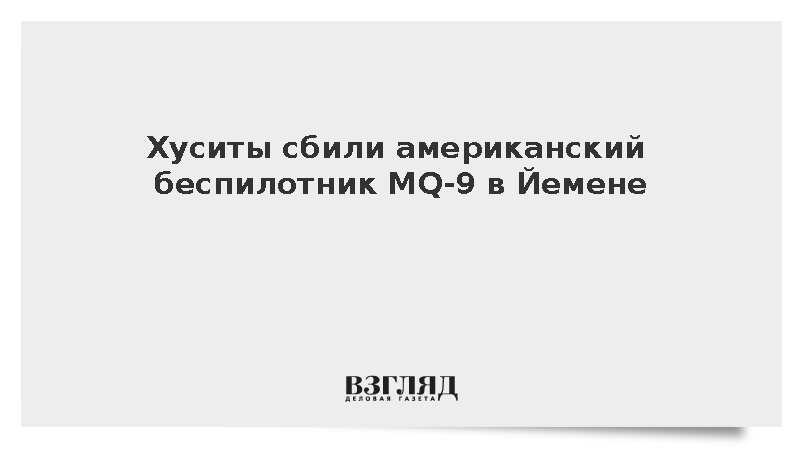 Как сообщает РИА «Новости», шиитское военно-политическое движение «Ансар Алла», также известное как хуситы, заявило о сбитии американского разведывательного беспилотника MQ-9 на северо-западе Йемена. Согласно заявлению вооруженных сил хуситов, беспилотник был сбит враждебной миссией над провинцией Хадджа.