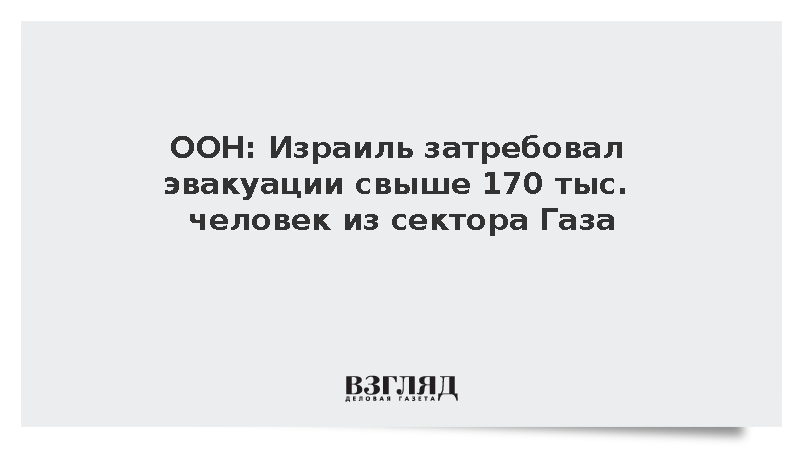Израильская сторона потребовала эвакуировать из районов боевых действий порядка 170 тыс. жителей сектора Газа, сообщило представительство управления по координации гуманитарных вопросов (УКГВ) ООН на оккупированных территориях Палестины.