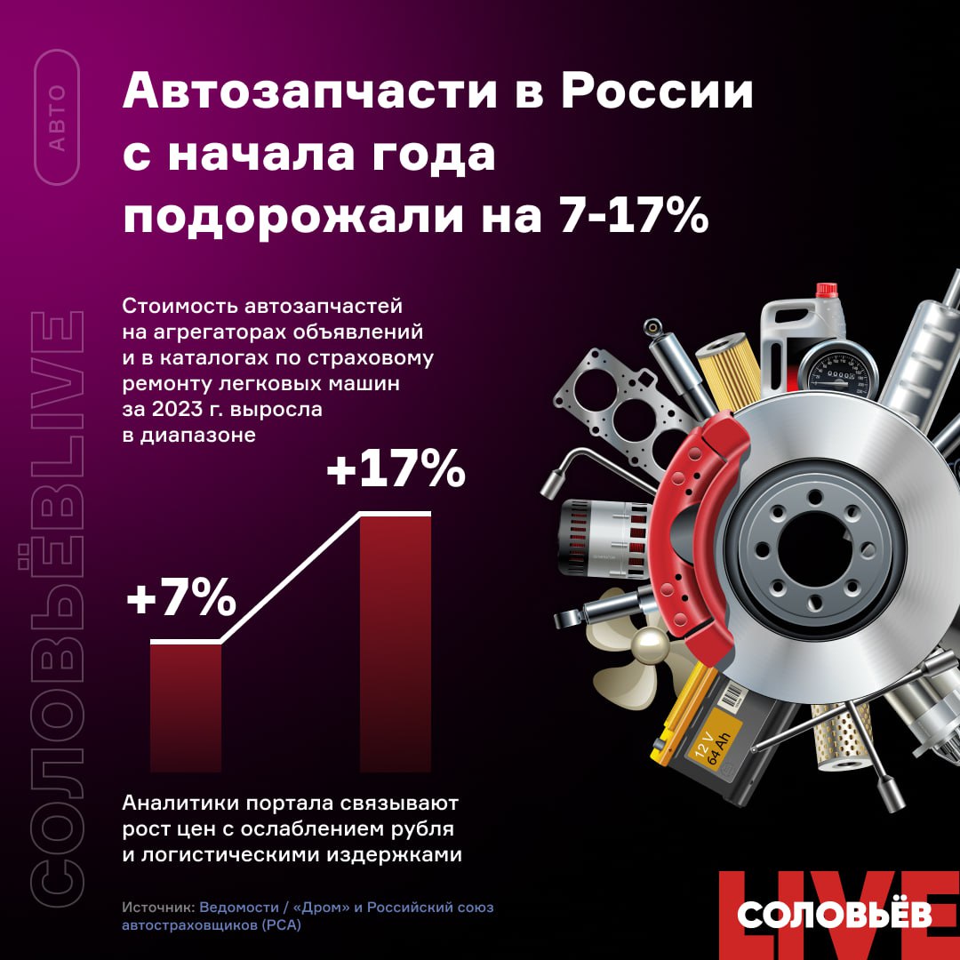 ❗️Автозапчасти в России с начала года подорожали на 7-17%