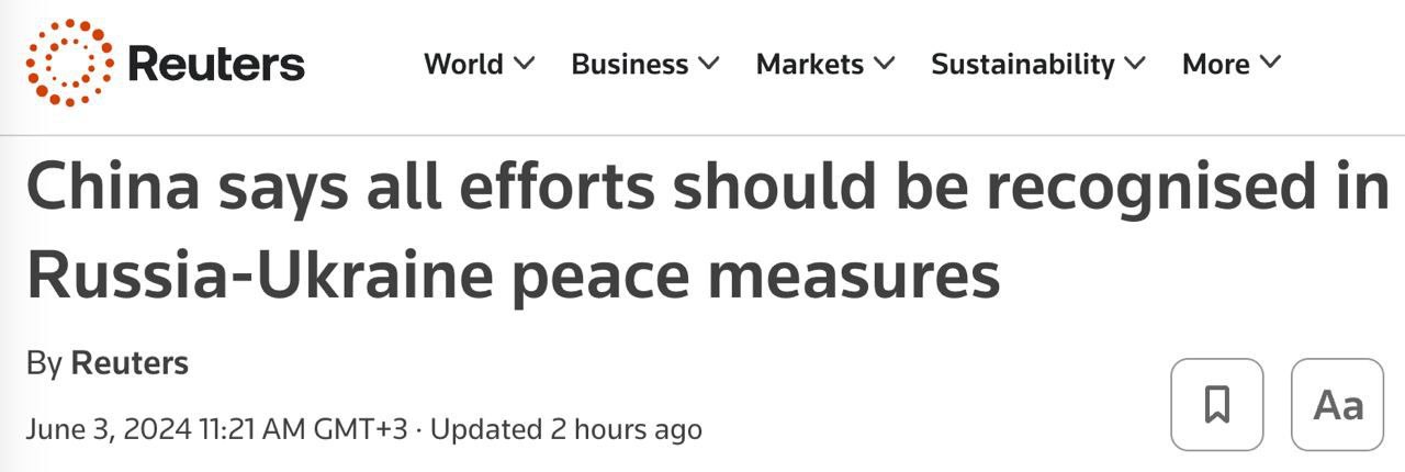 Китай ответил на обвинения Зеленского в срыве мирной конференции в Швейцарии, передает Reuters.