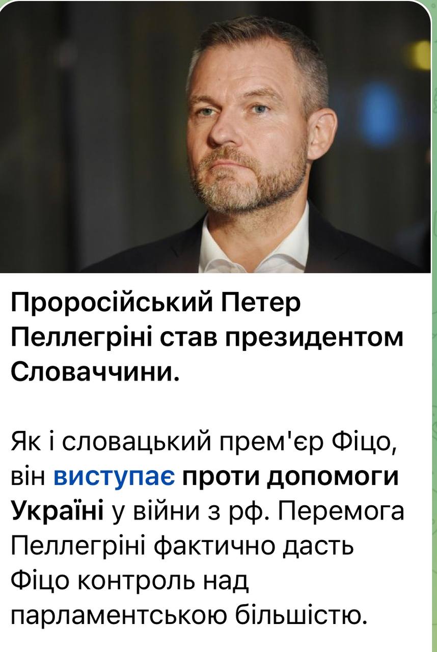 Как и словацкий премьер Фицо, он выступает против помощи Украине в войне с РФ. Победа Пеллегрини фактически даст Фицо контроль над парламентским большинством.