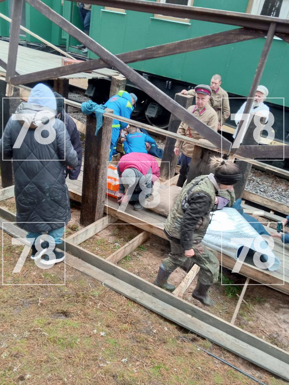 На кадрах — обвалившаяся на съемках картины «Василий Теркин» в Ленобласти платформа. Видео и фото оказались в распоряжении 👾.