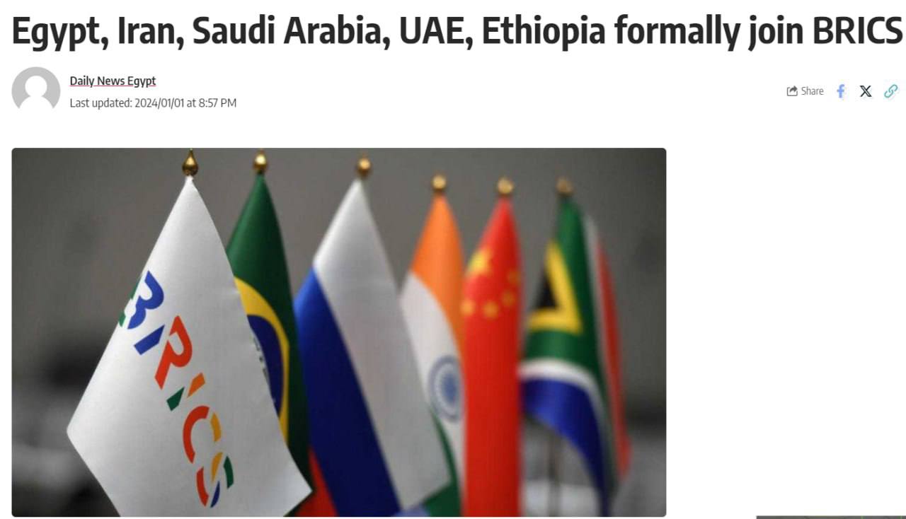 ⚡️Сегодня БРИКС официально увеличилась на пять государств — Daily News Egypt.