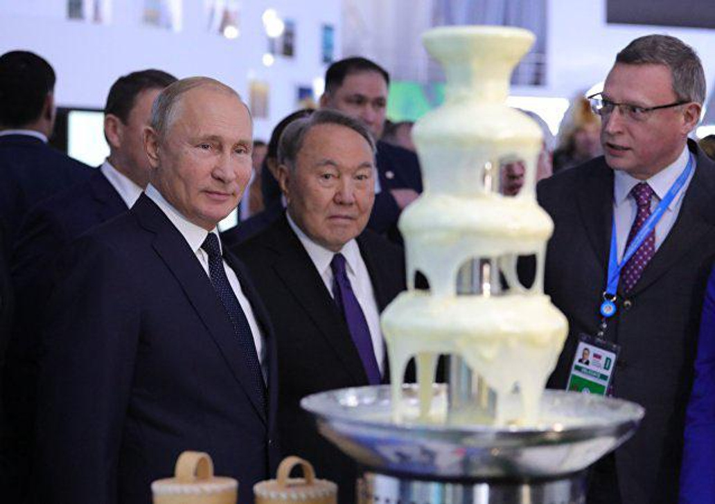 Это не первый сгущеночный фонтан в Омске. Вариант камерного формата омичи показали в Петропавловске на форуме межрегионального сотрудничества Казахстана и России. Такой неожиданный экспонат заинтересовал сразу двух президентов — Владимира Путина и ныне экс-главу Казахстана Нурсултана Назарбаева. Тогда руководство комбината решило сделать необычный фонтан уже большого формата. И в назначенный час в сооружение высотой около двух метров вылили четыре бидона со сгущенкой. Всего в чаше поместилось почти 200 литров. Это было в апреле 2019 года.