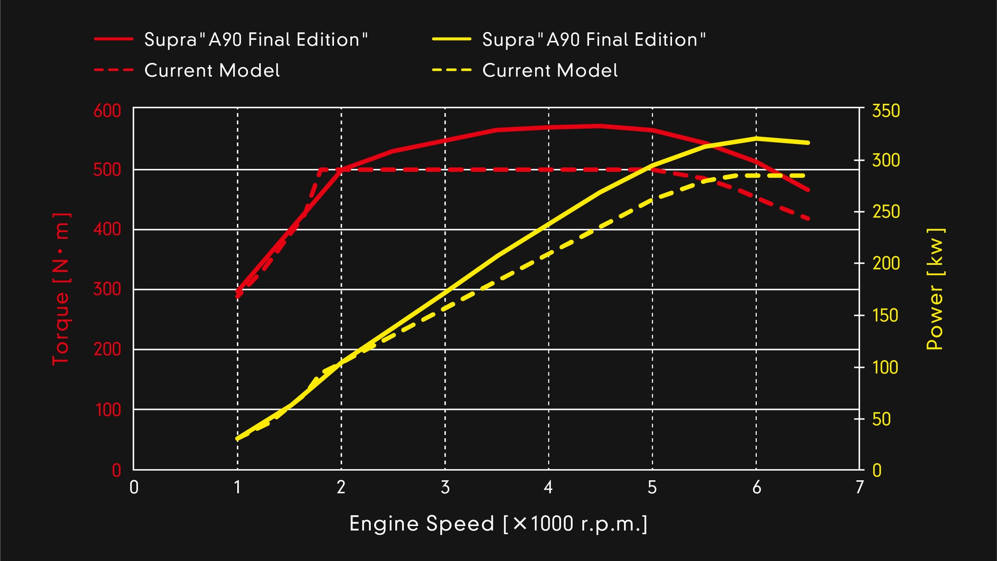 У версии A90 Final Edition доработок заметно больше, главные касаются как раз-таки двигателя B58: установлен новый впускной коллектор с пониженным сопротивлением, в системе выпуска появились новые катализаторы с пониженным сопротивлением и титановые глушители Akrapovic, в систему охлаждения добавлен ещё один радиатор, переписана программа управления, в картер добавлена перегородка, уменьшающая отток масла при сильных боковых перегрузках. Максимальная отдача двигателя в результате повышена до 435 л.с. и 570 Нм. В пару форсированному мотору ставится только 6-ступенчатая МКП, потолок максимальной скорости поднят до 270 км/ч, крышка дифференциала получила более развитое оребрение для лучшего охлаждения.
