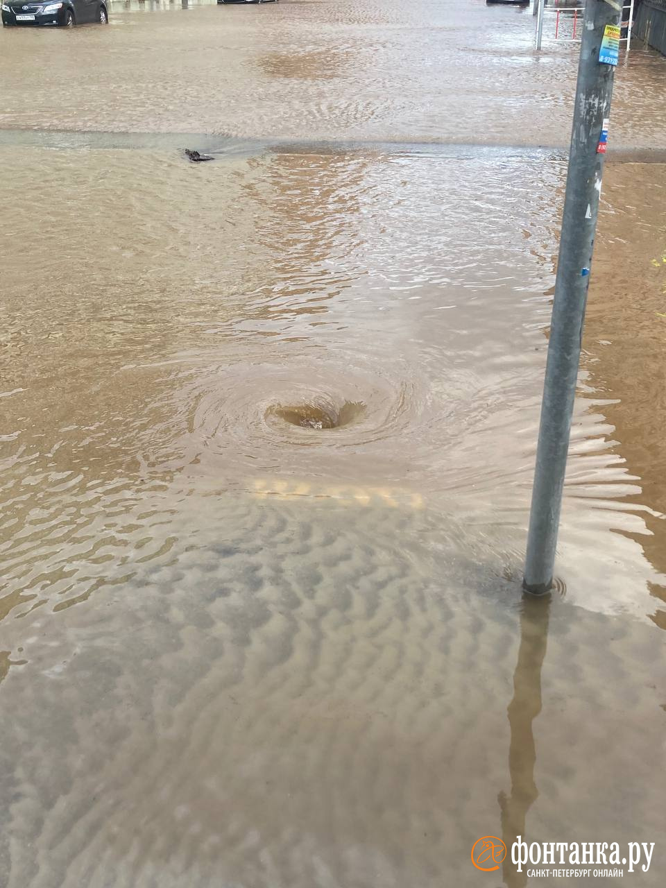 На перекрестке 7-й Советской улицы и Греческого проспекта случился серьезный потоп. Кадрами 3 июля с «Фонтанкой» поделился очевидец.