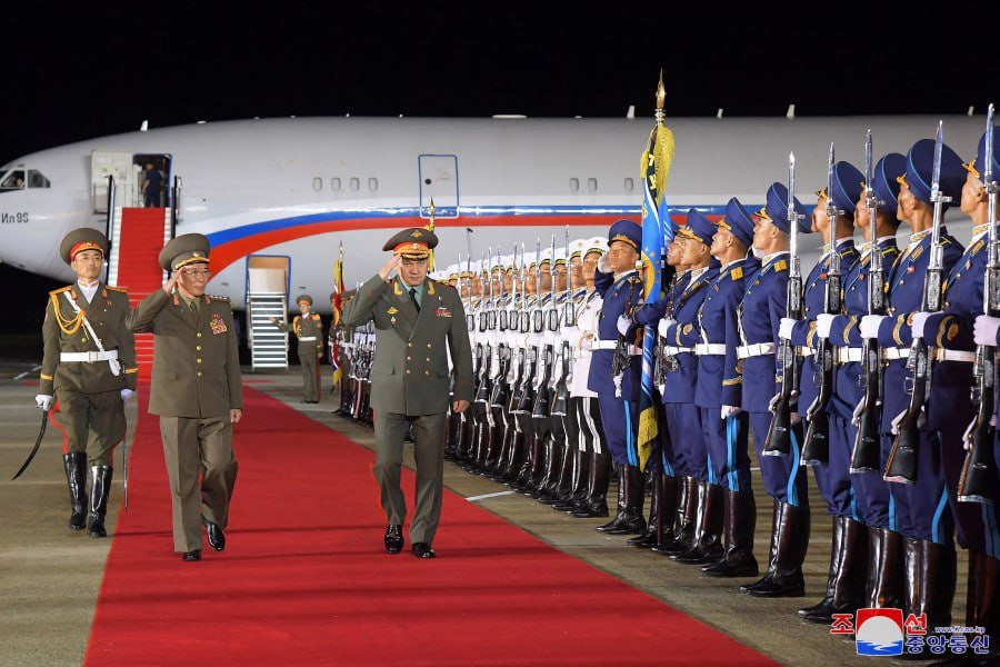 Российского министра обороны Шойгу встретил его коллега по военному ведомству КНДР генерал армии Кан Сун Нам.