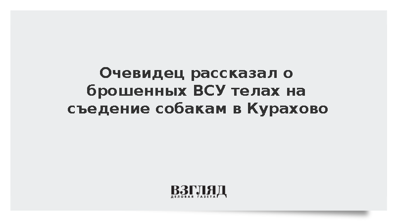 Очевидец событий, беженец Александр Рубцов, рассказал, что видел, как бездомные животные поедали останки украинских солдат, передает РИА «Новости».