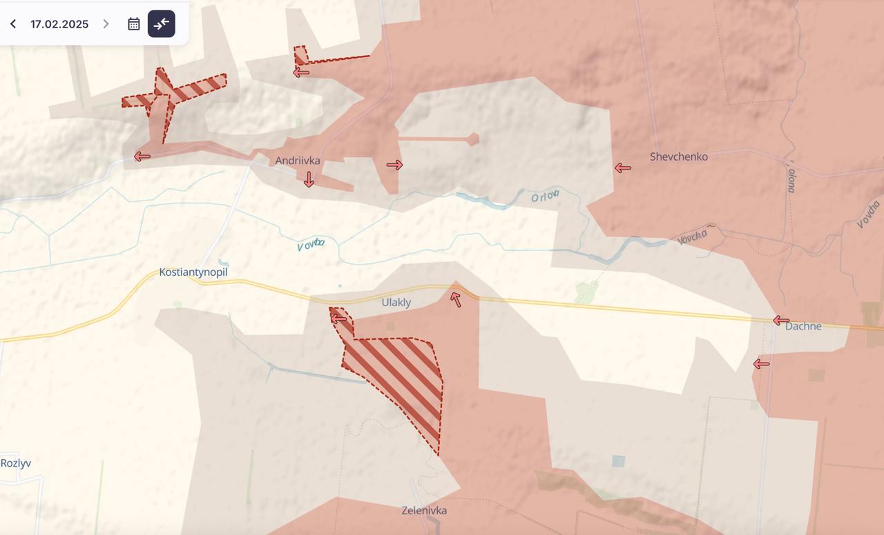 Активное наступление под Великой Новоселкой ВС РФ начали с 10 февраля (на карте показана динамика фронта с этой даты).