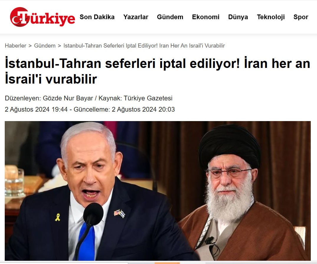 Türkiye: авиакомпании Турции отменили или перенесли рейсы в Тегеран в ночь на субботу.