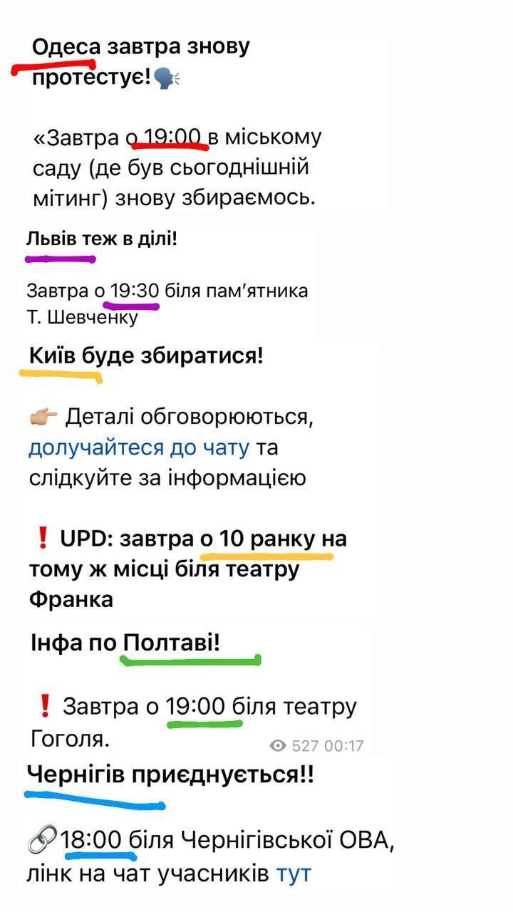 Украинцы намерены продолжать «протесты» — в соцсетях публикуются новые призывы выходить этим вечером на улицы в Киеве, Харькове, Одессе, Черновцах, Львове, Виннице, Николаеве, Полтаве и Чернигове.