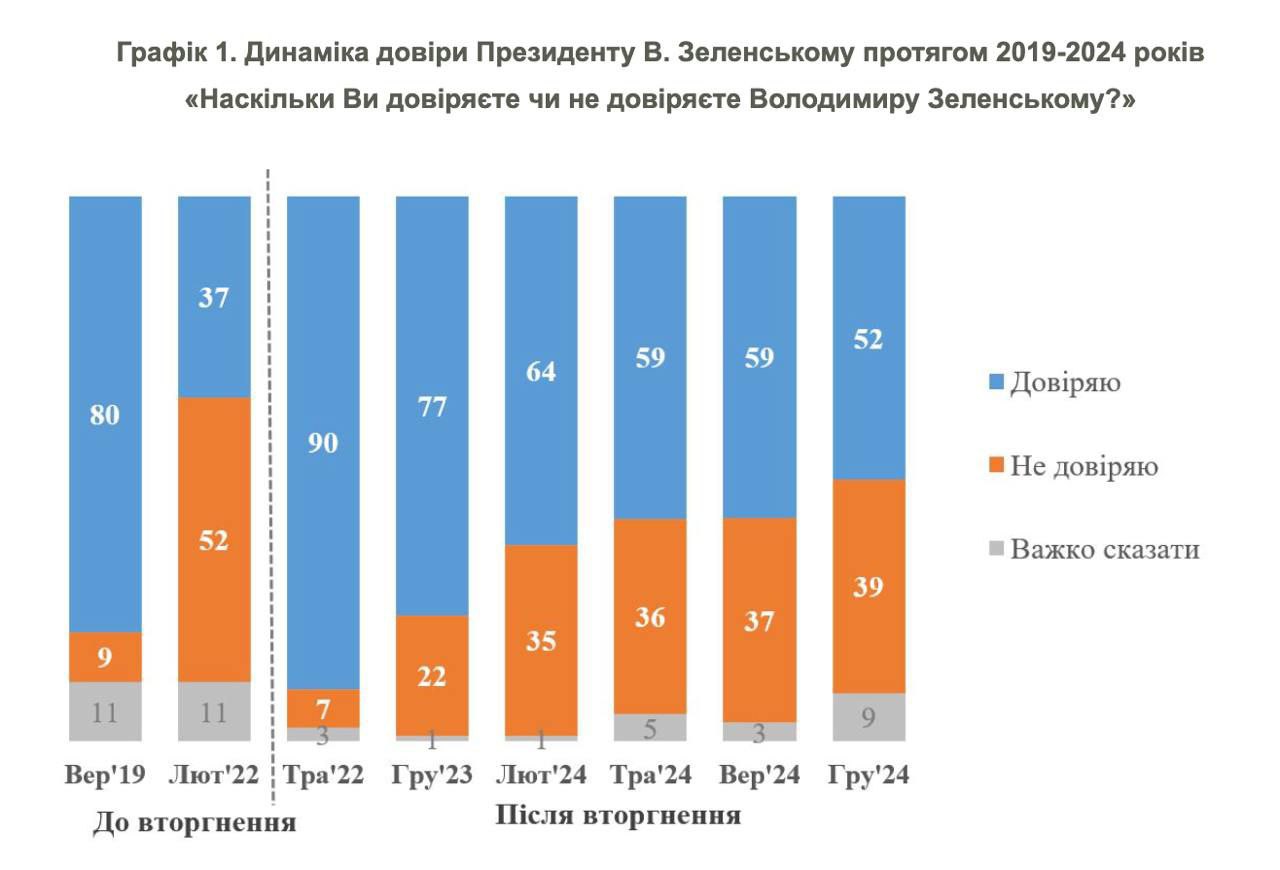 Уровень доверия к Зеленскому. 1. Упал до войны - потому что Зеленский обманул с миром и с отказом от посадить Порошенко и с русским языком.