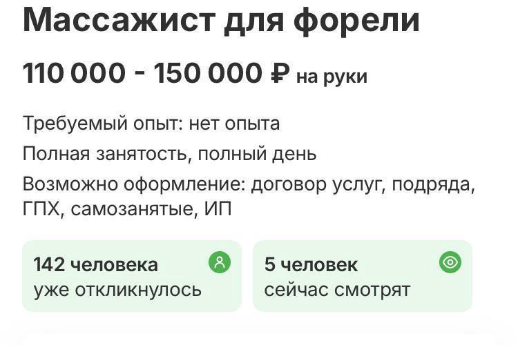 Анекдот дня: в Москве срочно ищут массажиста для форели с зарплатой 150 000 рублей в месяц