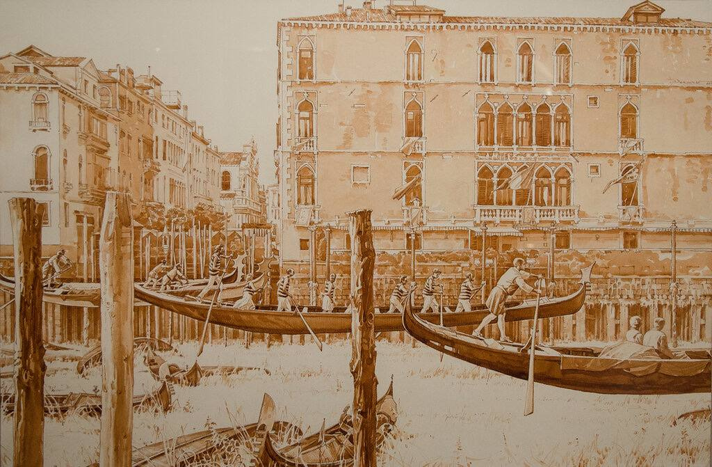 Столице Италии и стройным венецианским пейзажам, а также другим городам и странам (но и любимому Петербургу, конечно) посвящены многие работы мастера, часто работавшего в разных художественных центрах Европы. К античности же восходит техника яичной темперы, в которой любил работать Дергунов.