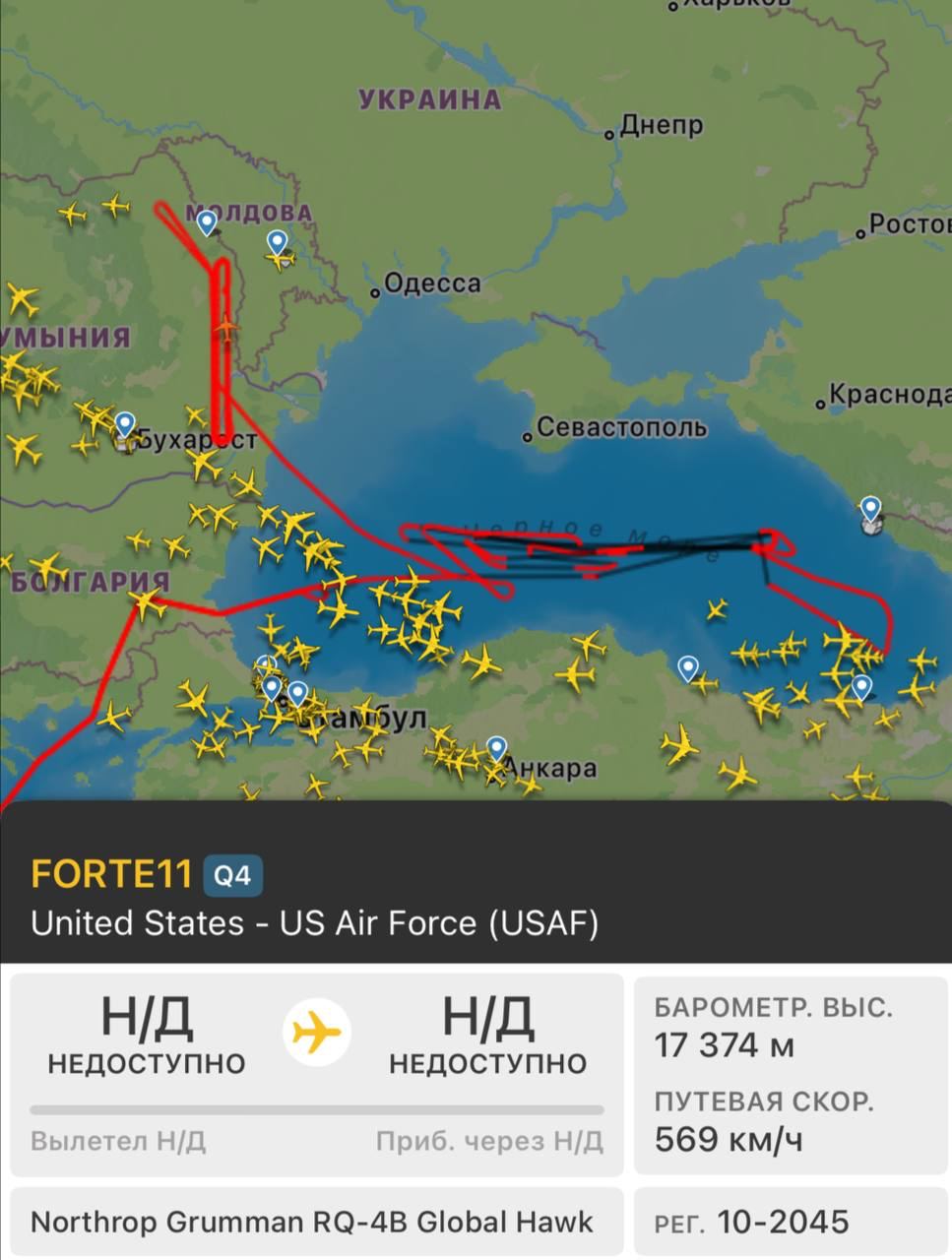 ΠΠΎ Π²ΡΠ΅ΠΌΡ Π°ΡΠ°ΠΊΠΈ Π½Π° ΠΏΠΎΠ»ΡΠΎΡΡΡΠΎΠ² ΡΠ°Π·Π²Π΅Π΄ΡΠ²Π°ΡΠ΅Π»ΡΠ½ΠΎ-ΡΠ΄Π°ΡΠ½ΡΠΉ Π±Π΅ΡΠΏΠΈΠ»ΠΎΡΠ½ΠΈΠΊ Global Hawk ΠΏΠΎΡΡΠΎΡΠ½Π½ΠΎ ΠΊΡΡΠΆΠΈΠ» Π½Π°Π΄ Π§Π΅ΡΠ½ΡΠΌ ΠΌΠΎΡΠ΅ΠΌ. Π‘ΠΎΠΎΠ±ΡΠ°Π΅ΡΡΡ, ΡΡΠΎ Π°ΠΌΠ΅ΡΠΈΠΊΠ°Π½ΡΠΊΠΈΠΉ Π΄ΡΠΎΠ½ ΡΡΠ°ΡΡΠΎΠ²Π°Π» Π·Π° Π½Π΅ΡΠΊΠΎΠ»ΡΠΊΠΎ ΡΠ°ΡΠΎΠ² Π΄ΠΎ Π½Π°Π»Π΅ΡΠ° Π½Π° ΠΡΡΠΌ Ρ Π²ΠΎΠ΅Π½Π½ΠΎ-ΠΌΠΎΡΡΠΊΠΎΠΉ Π°Π²ΠΈΠ°Π±Π°Π·Ρ ΠΠΠ’Π Π‘ΠΈΠ³ΠΎΠ½Π΅Π»Π»Π° Π½Π° Π‘ΠΈΡΠΈΠ»ΠΈΠΈ.