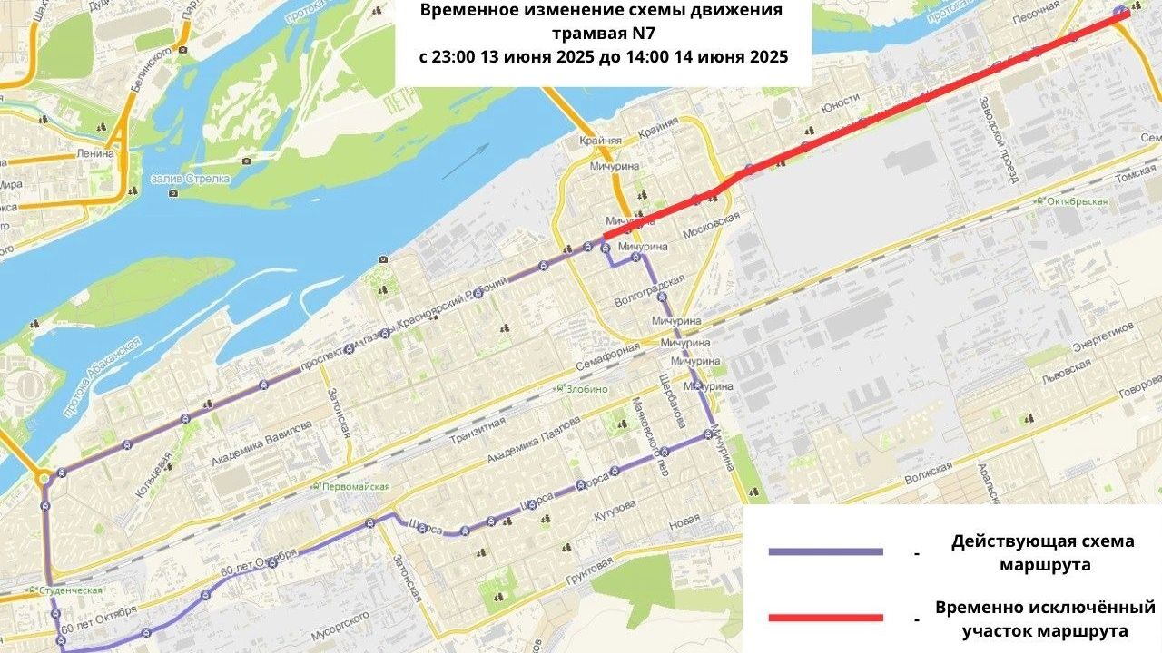 Изменения связаны с ремонтом трамвайных путей на перекрестке Красноярского рабочего и переулка Короткий. Ремонтные работы пройдут с 23:00 13 июня до 14:00 14 июня.