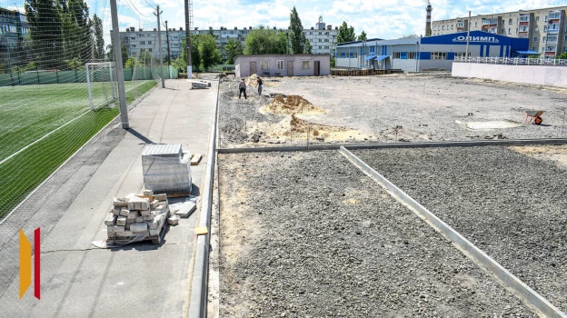 Здесь сделают новое основание и обеспечат отвод поверхностных вод. В рамках благоустройства укрепят и частично устроят подпорные стены в местах большого перепада уровней проездов и площадок. На месте хоккейной коробки обустроят территорию для воркаута площадью 240 кв. м и универсальную площадку для игровых видов с беговыми дорожками площадью 800 «квадратов». На поверхности уложат наливное полиуретановое покрытие. На месте кортов обустроят мини-футбольное поле размером 1050 кв. м с покрытием из искусственной травы и резиновой крошки.